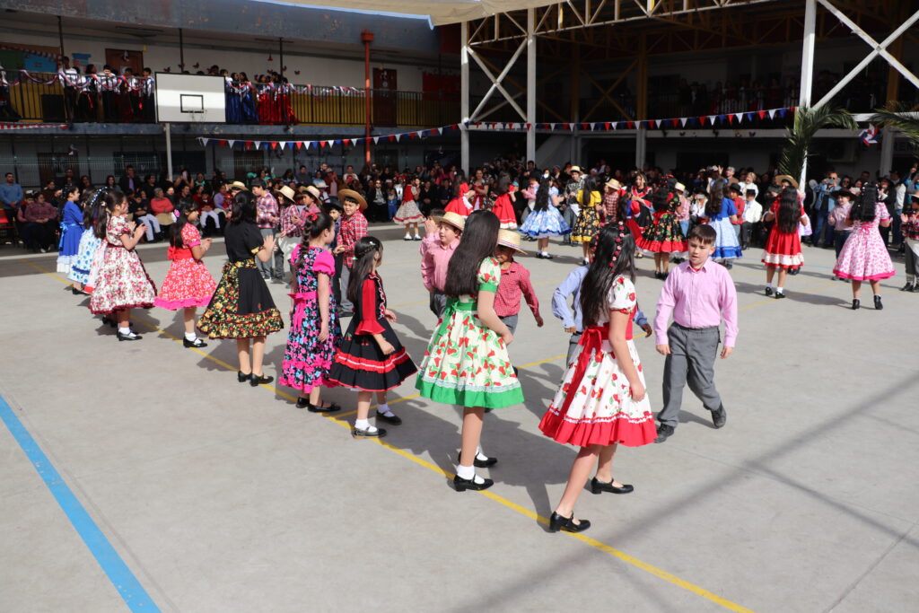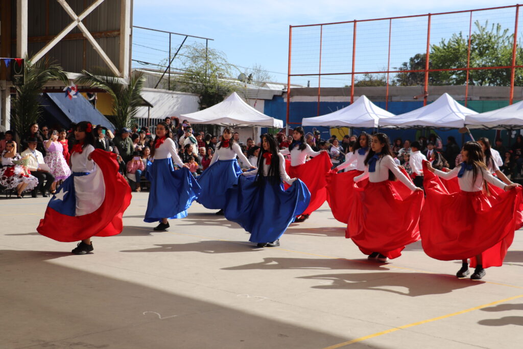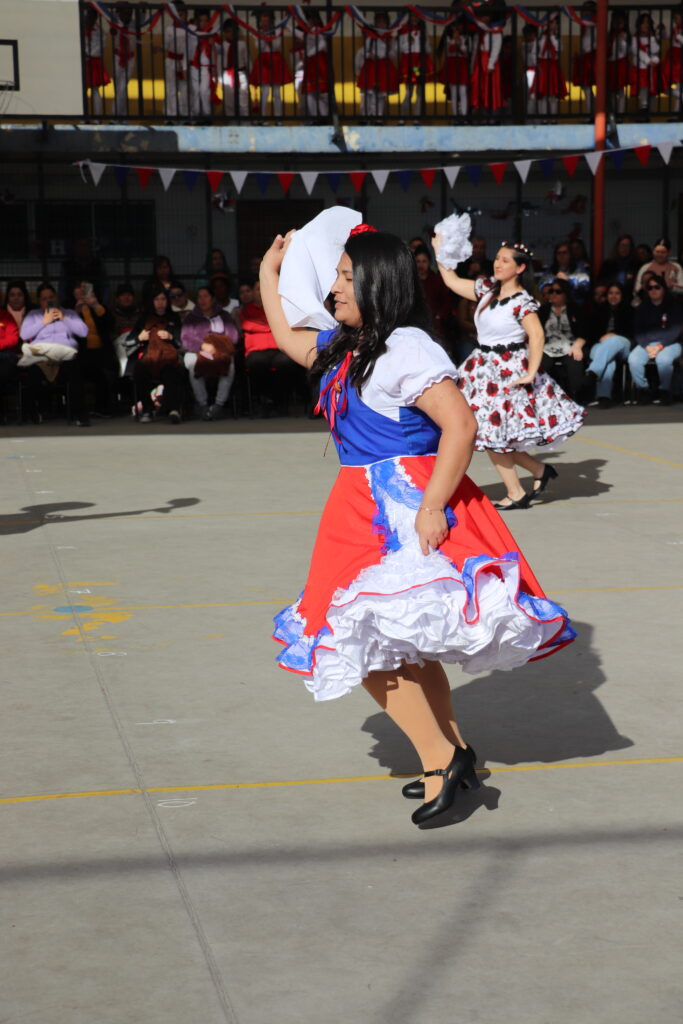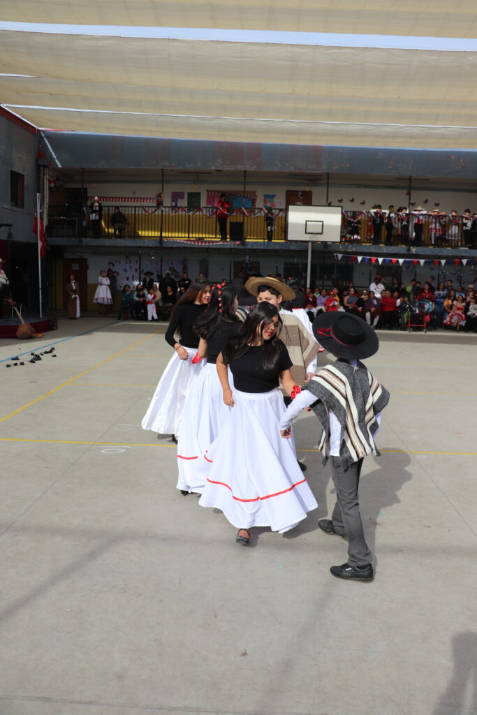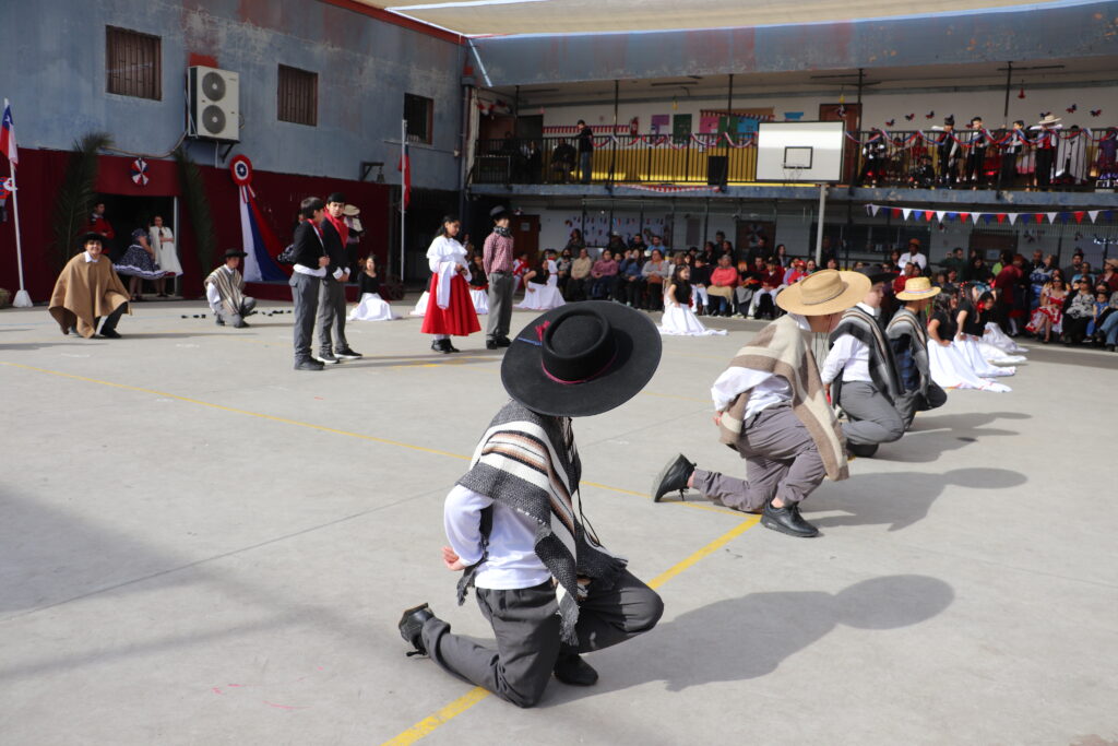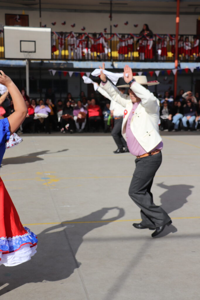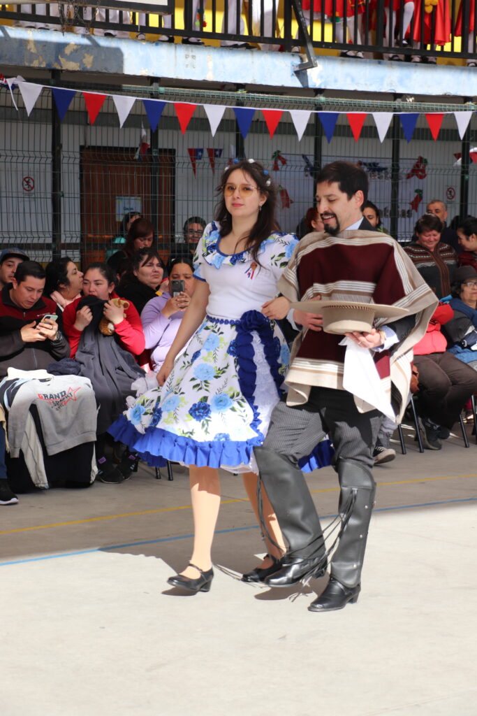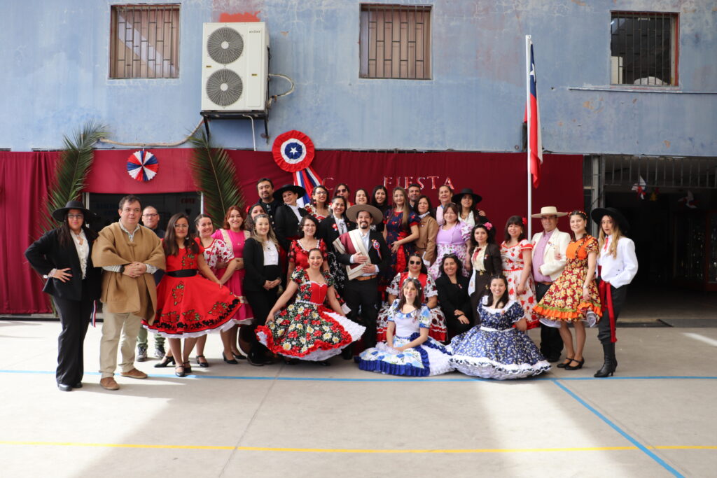 El Pasado viernes 12 de Septiembre nuestro establecimiento se dispuso a una nueva celebración de la Fiesta de la Chilenidad en donde cada curso mostro diverso bailes y vestimentas típicas que reflejan nuestra cultura en cada zona del país. además recibimos en nuestro establecimiento la visita de una pareja de baile que junto a nuestro Director Don Jorge Villalobos y Profesora Valeria Ocaranza dieron inicio a estas ceremonia bailando tres pie de cueca, dentro de esta, también pudimos disfrutar de una hermosa declamación realizada por nuestra Jefe de Unidad Técnica Sra. María Eugenia Bustos y la premiación de las parejas ganadoras de nuestro Campeonato de Cueca de ambas jornadas.