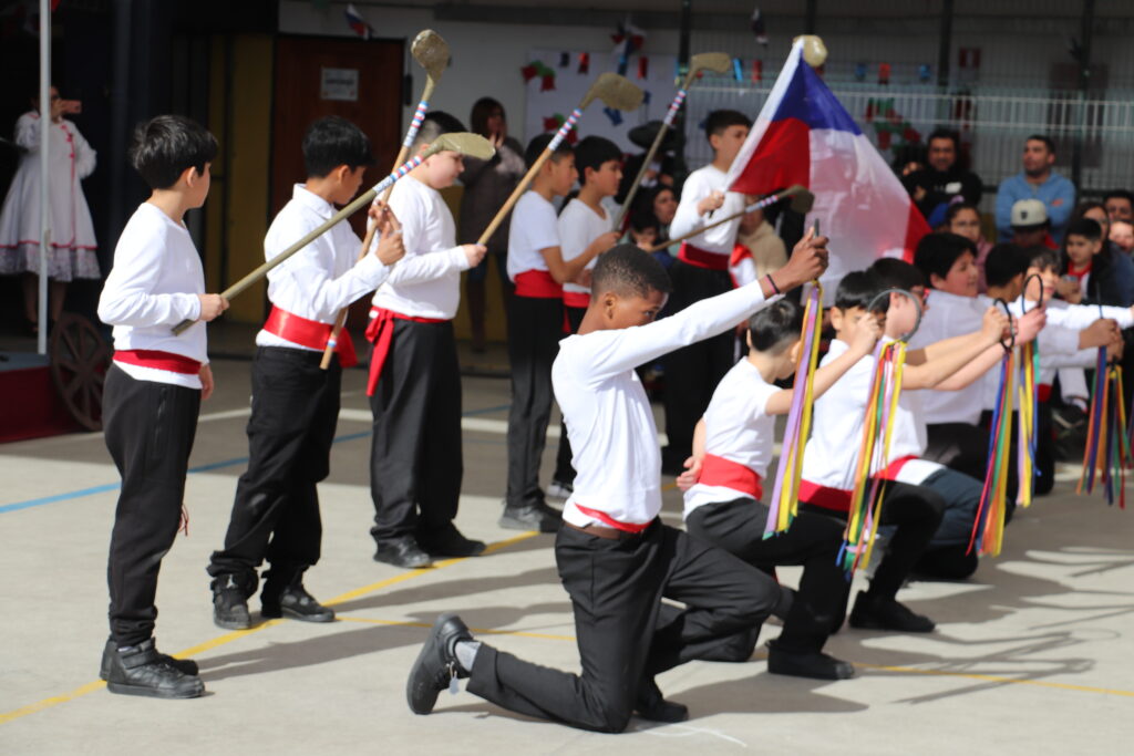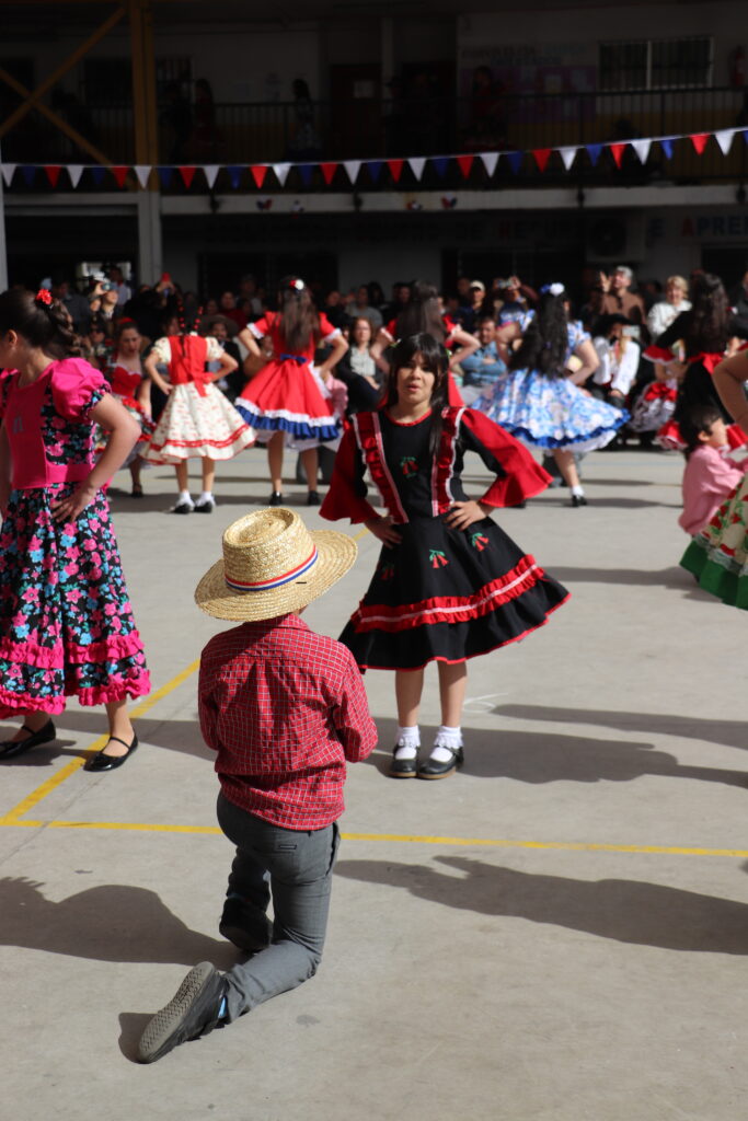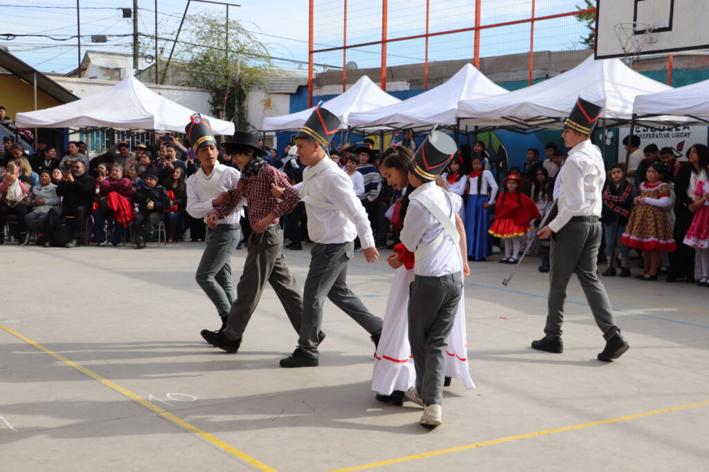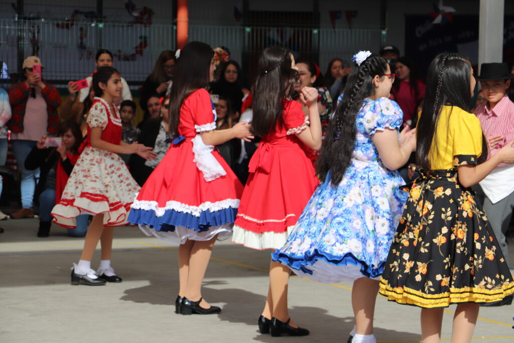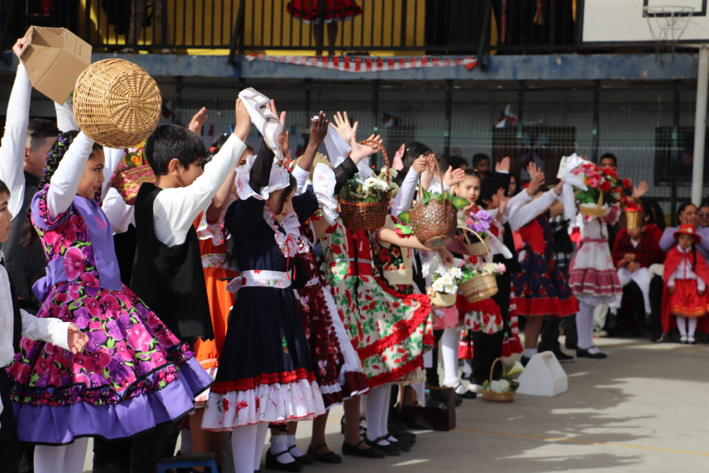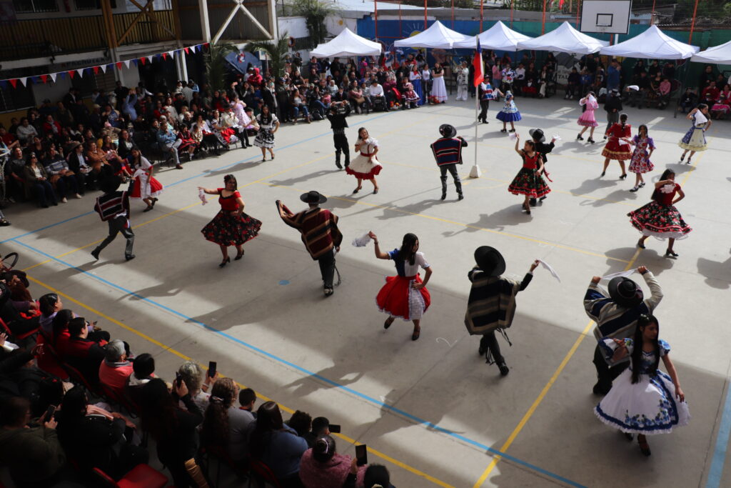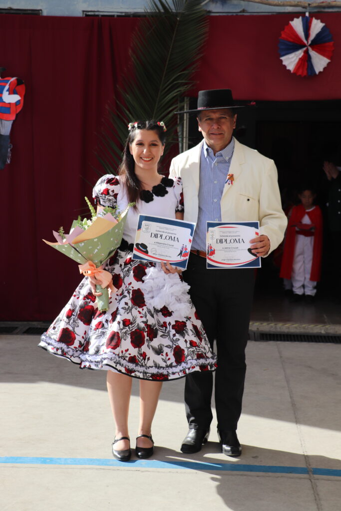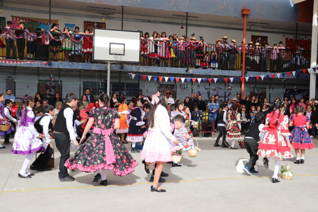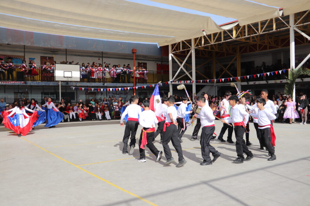 El Pasado viernes 12 de Septiembre nuestro establecimiento se dispuso a una nueva celebración de la Fiesta de la Chilenidad en donde cada curso mostro diverso bailes y vestimentas típicas que reflejan nuestra cultura en cada zona del país. además recibimos en nuestro establecimiento la visita de una pareja de baile que junto a nuestro Director Don Jorge Villalobos y Profesora Valeria Ocaranza dieron inicio a estas ceremonia bailando tres pie de cueca, dentro de esta, también pudimos disfrutar de una hermosa declamación realizada por nuestra Jefe de Unidad Técnica Sra. María Eugenia Bustos y la premiación de las parejas ganadoras de nuestro Campeonato de Cueca de ambas jornadas.